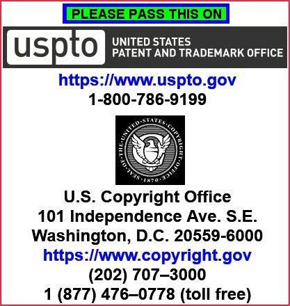 COPYRIGHTS - TRADEMARKS - PATENTS STRICTLY ENFORCED |